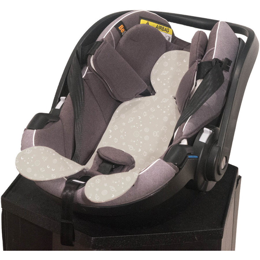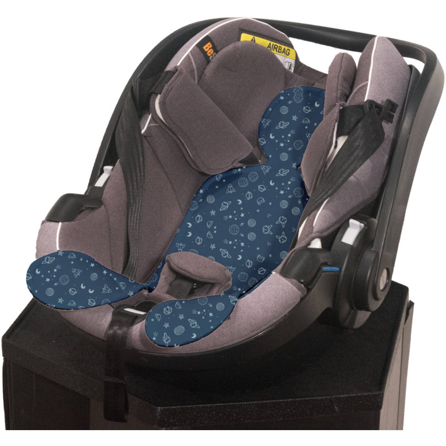 Wkładki są uniwersalne, pasują do prawie wszystkich fotelików samochodowych, występują w rozmiarach dopasowanych do rozmiaru fotelika.